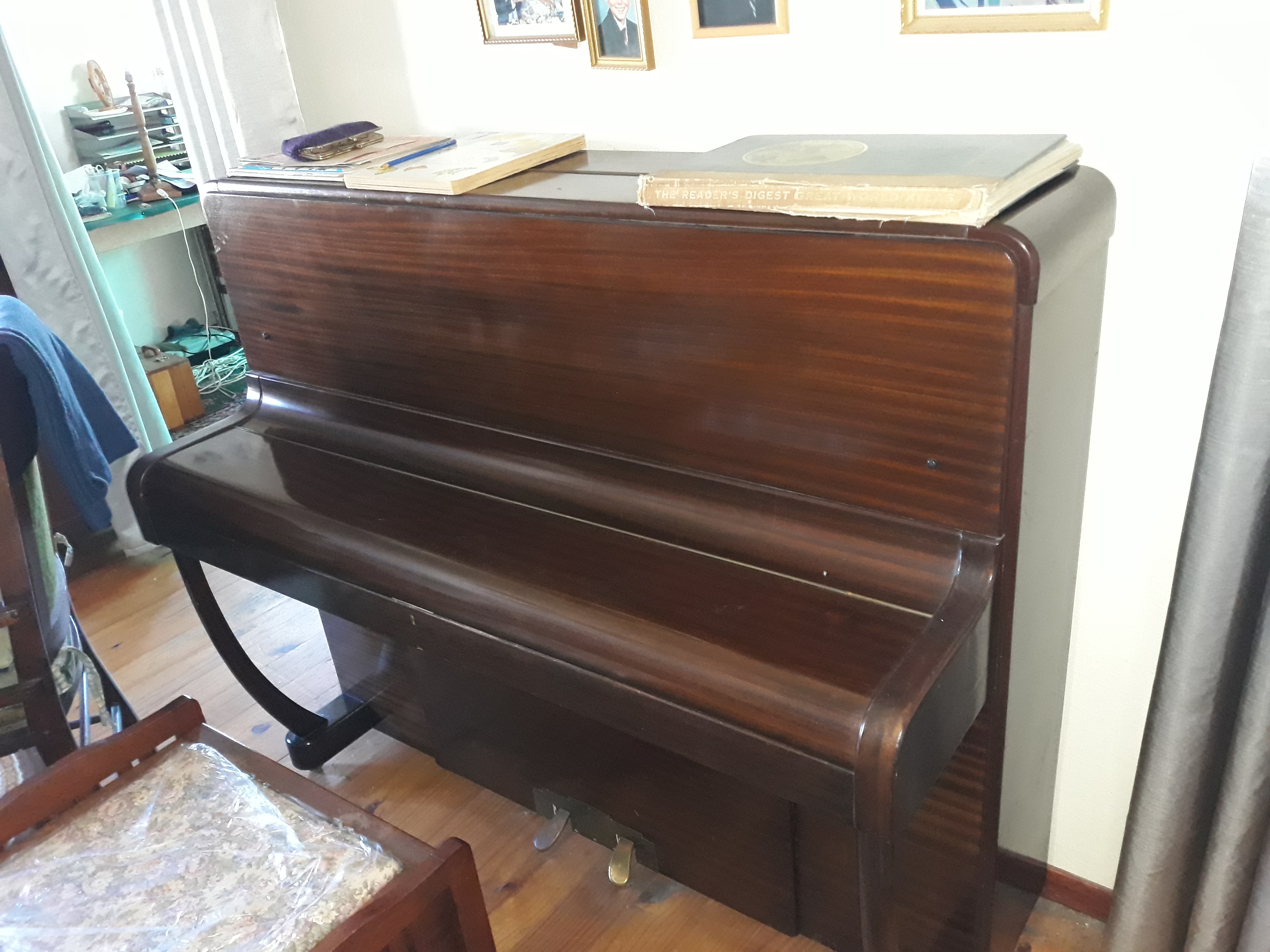 My Mom Mary Bland learnt to play the piano on her Granny Mary Bland’s upright Otto Bach at 13 Stuart Street. Mom’s sister Pat Cowie didn’t play, but when Granny Bland died the piano had to go to the older granddaughter. But how to get it there?
