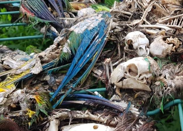 And what happened to them? “Given away” yet again. To a ‘Mnr Boshoff’ in Krugersdorp or Klerksdorp, who ‘trained’ parrots and put on shows where he would demonstrate how Jacko could ‘dance’ and Cocky could ‘talk.’ He was very well-known and that made it a good thing. Except well-known and ‘respected’ bird-cage people aren’t always what they say they are. Here’s what a raid on a parrot breeder found when the South African vice-president of the parrot breeders association’s aviaries in Randburg were raided this week: 150 dead parrots and the live birds in cages in shocking condition! Strange how almost all people who keep wild animals say how they LOVE them, but as far as I’m concerned it’s all Dancing Bears – they’re kept for money, fame, personal ego, etc. For their humans, not for the animals themselves.