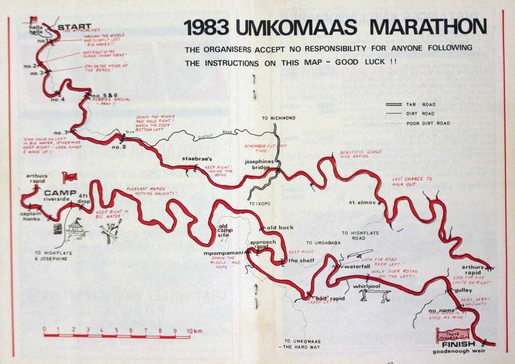 That was my only Umko marathon. For a few years after that I would sweep or pick out human flotsam and fiberglass jetsam at No.1 rapid, staying with Barry and Lyn Porter on their game farm afterwards.