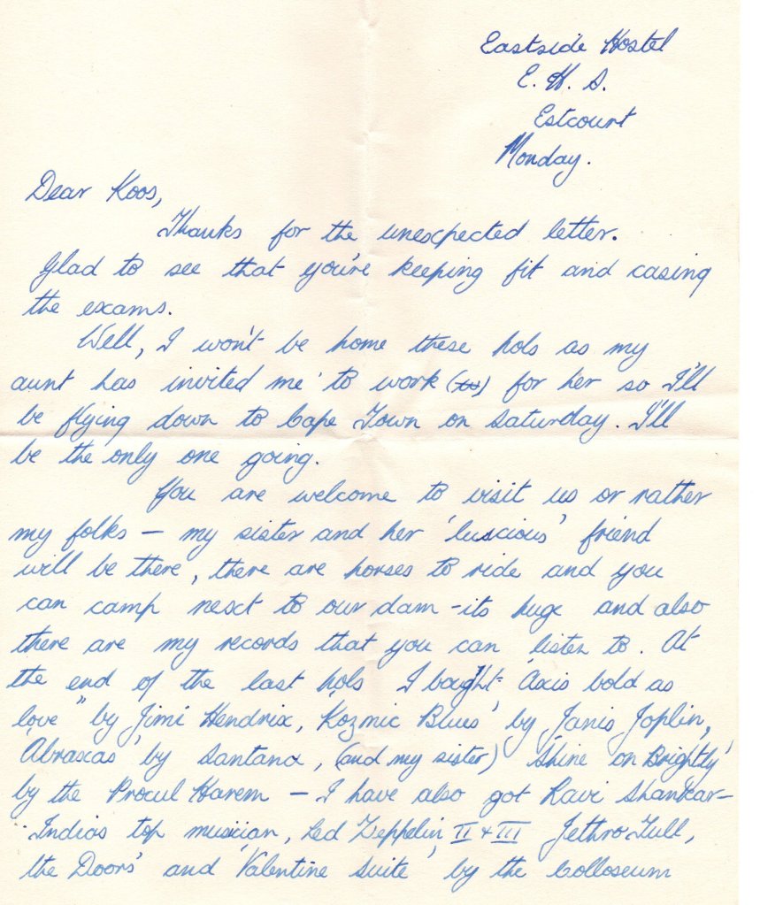 UPDATE: I searched the old desk again and found the rest of the envelope! It was franked on 30 March 1971. I was in Std 9, and Donald would have completed his time at Estcourt High School.