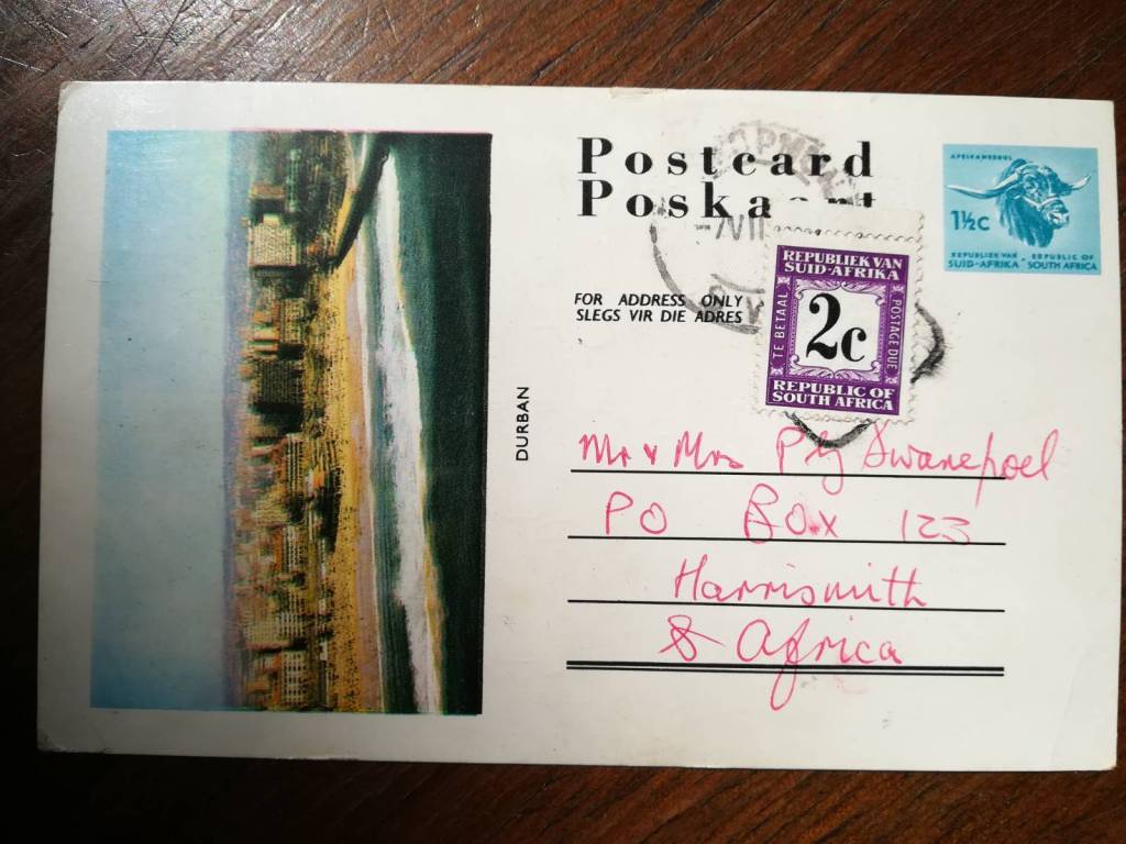 Leon ‘Fluffy’ Crawley, Harry ‘Pikkie’ Loots, Pierre du Plessis, Tuffy Joubert and I said YES! and then our parents said yes and forked over the cash, so we were off! Now Sheila’s postcard reminds me that Jan van Wyk – who would be chosen head boy in matric the next year – also went along.