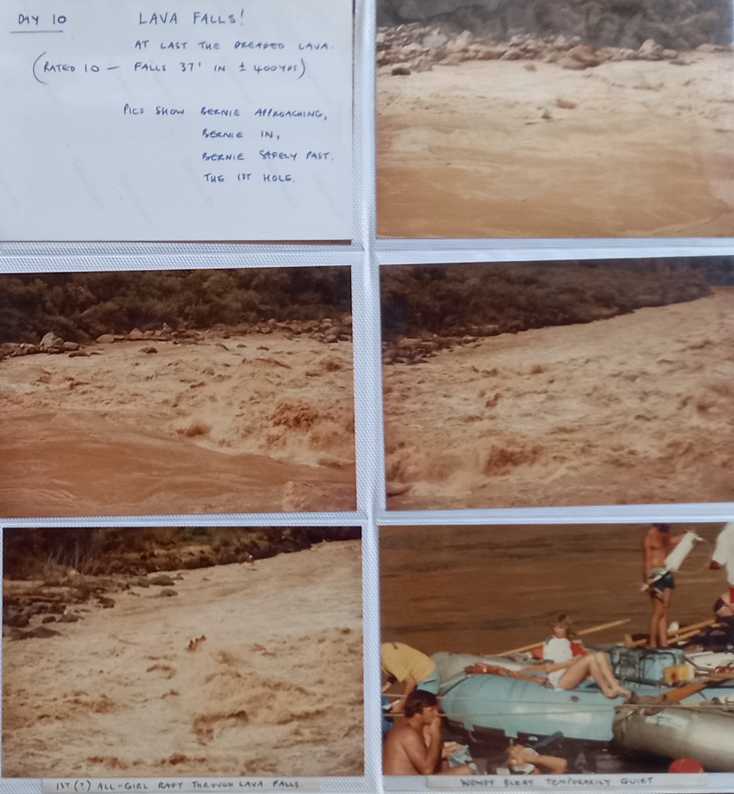 – Lava Falls – there’s a paddler there somewhere –– an all-girl team gets coached down Lava Falls –