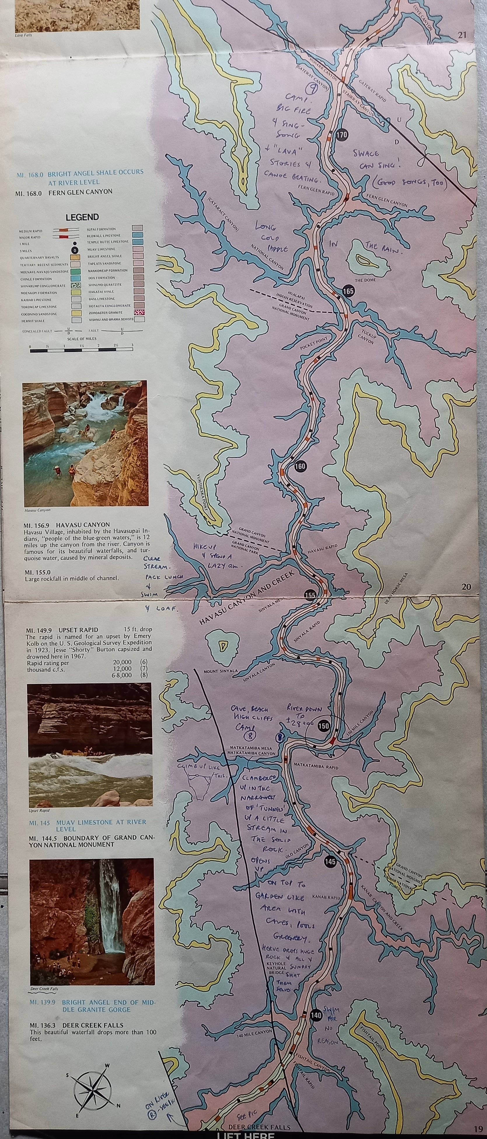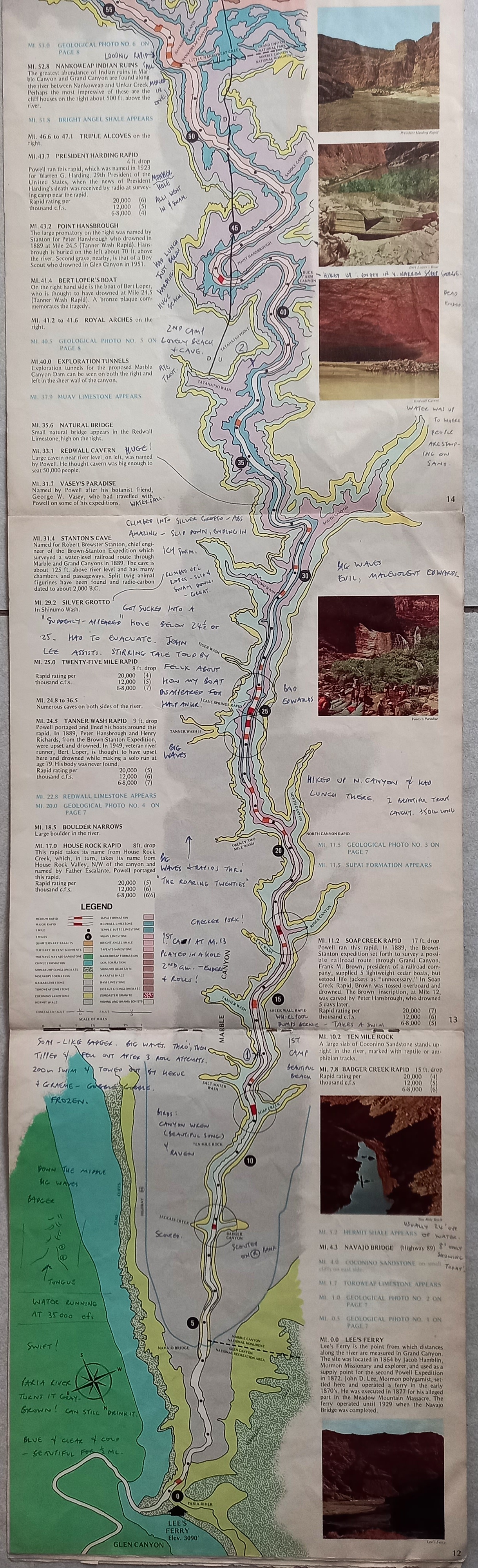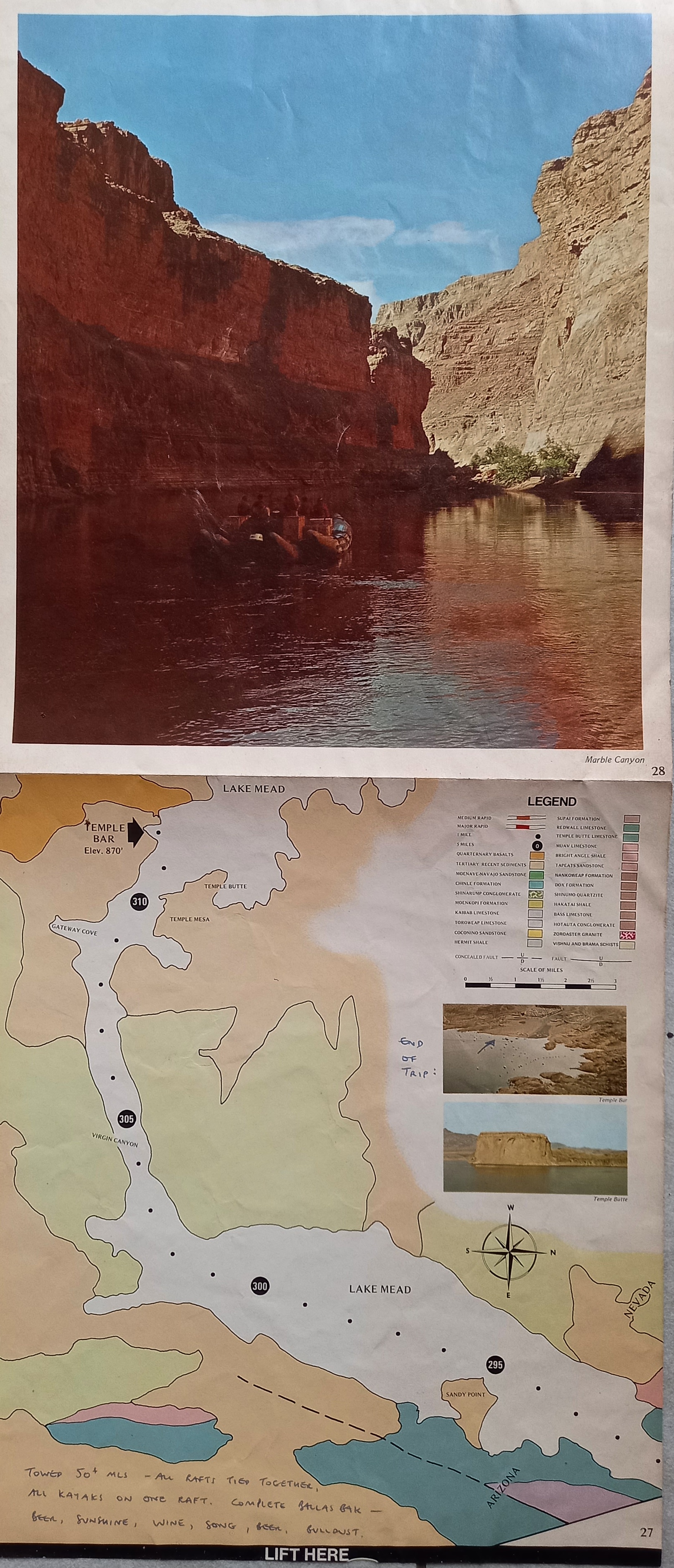 When? I wanted to know when exactly we were on the water to look up the flow on those days, but no-one knew. Now! Aha! I found an old letter (or Sheila did) written just before we flew to Arizona). I think we paddled – near as dammit – from 18 to 30 July 1984.