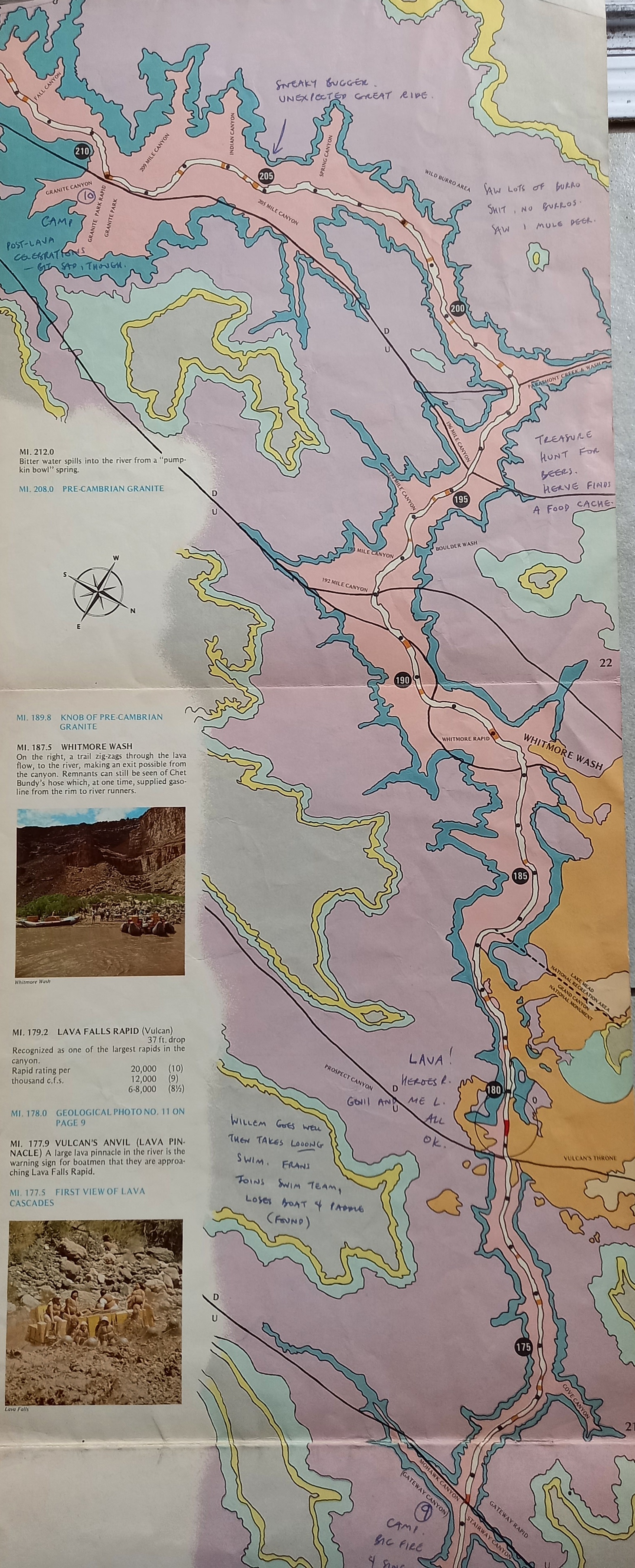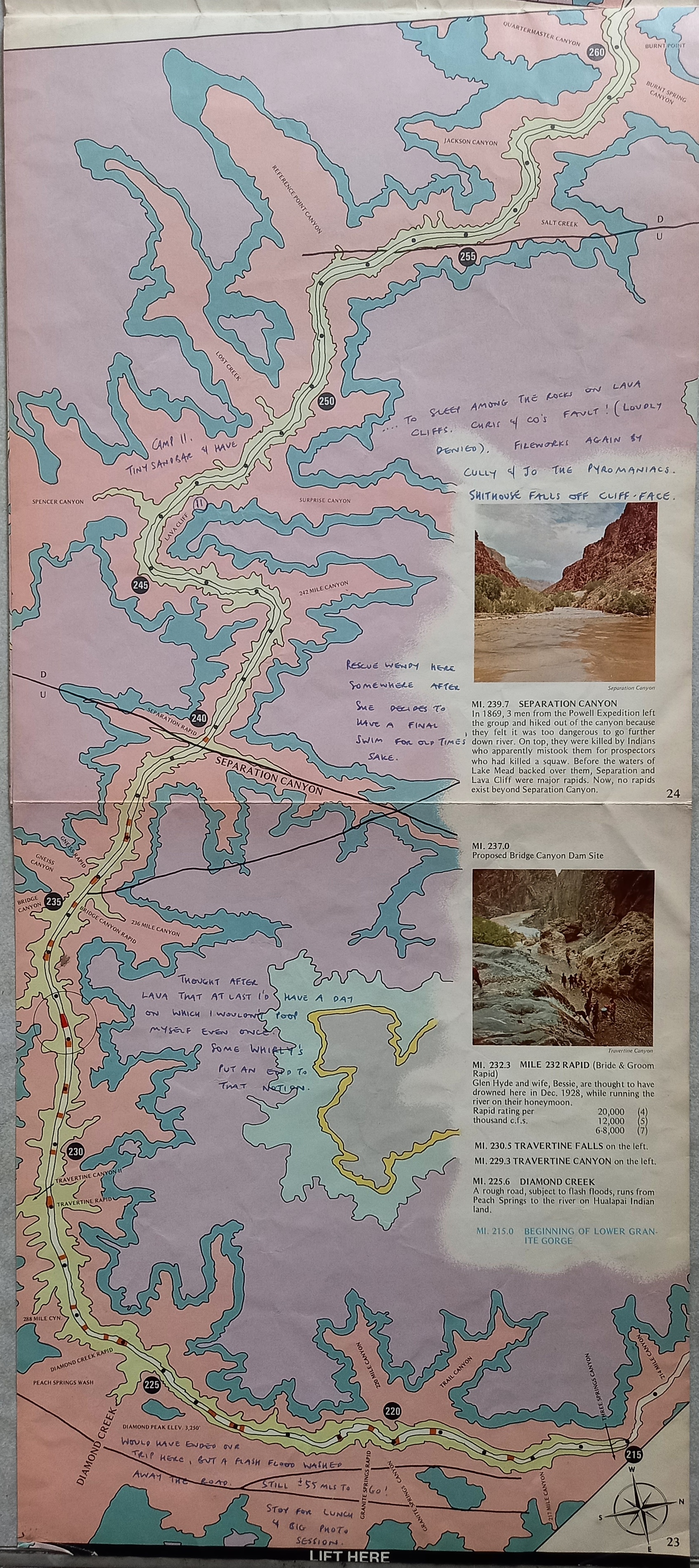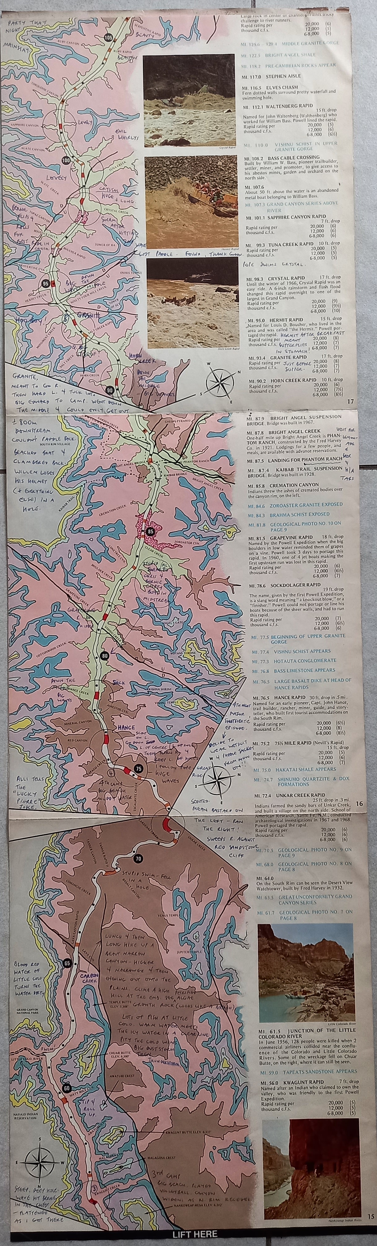 When? I wanted to know when exactly we were on the water to look up the flow on those days, but no-one knew. Now! Aha! I found an old letter (or Sheila did) written just before we flew to Arizona). I think we paddled – near as dammit – from 18 to 30 July 1984.