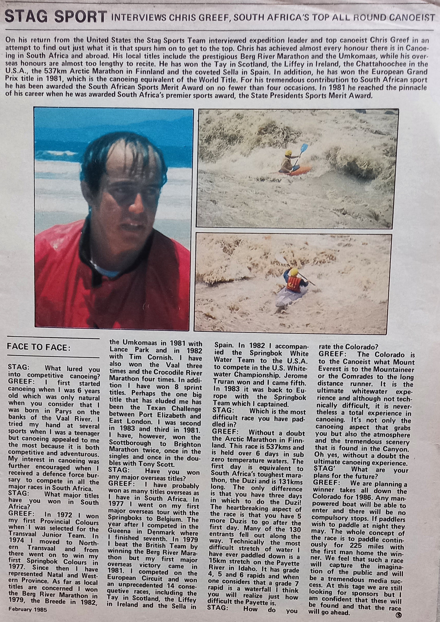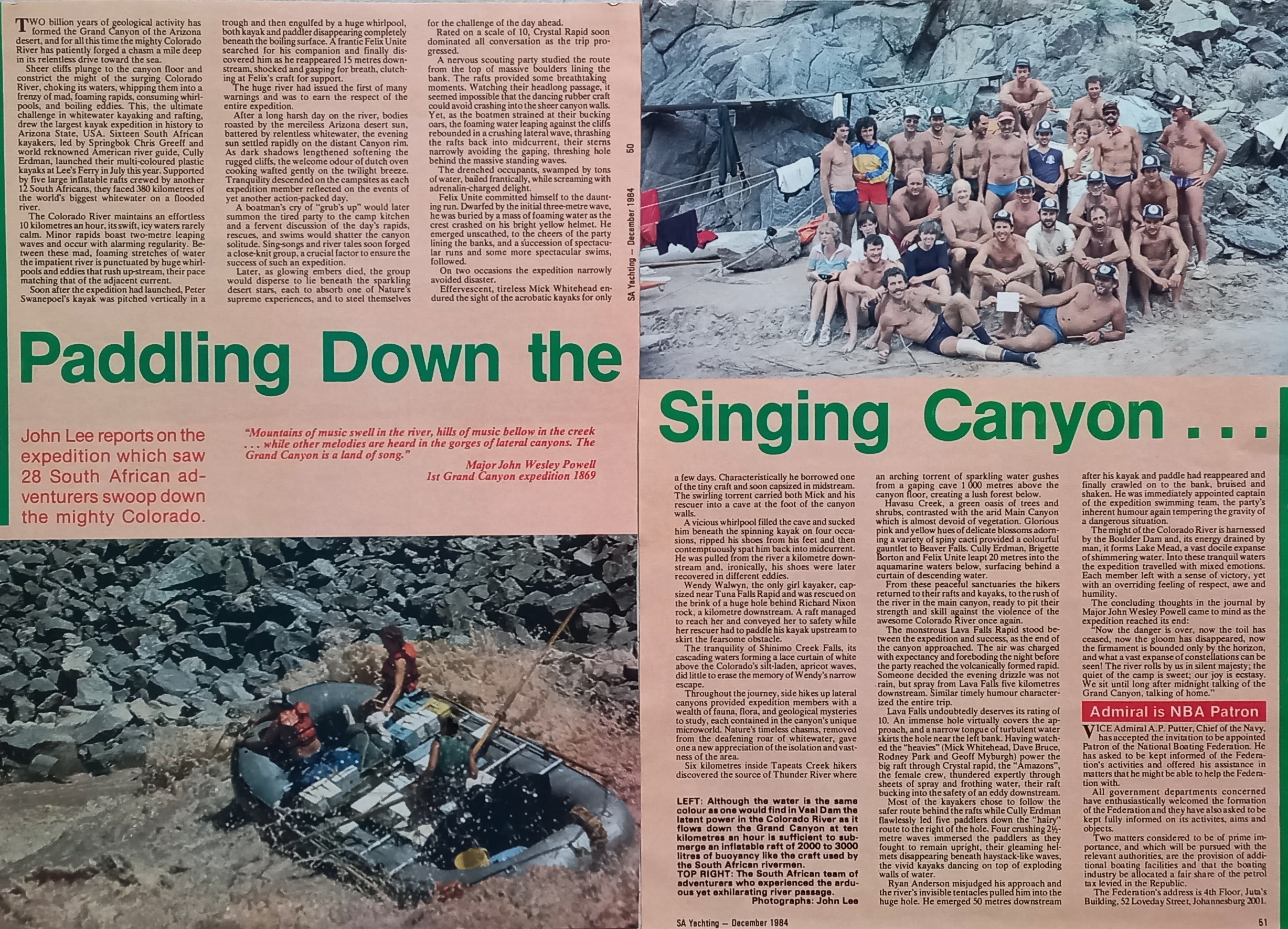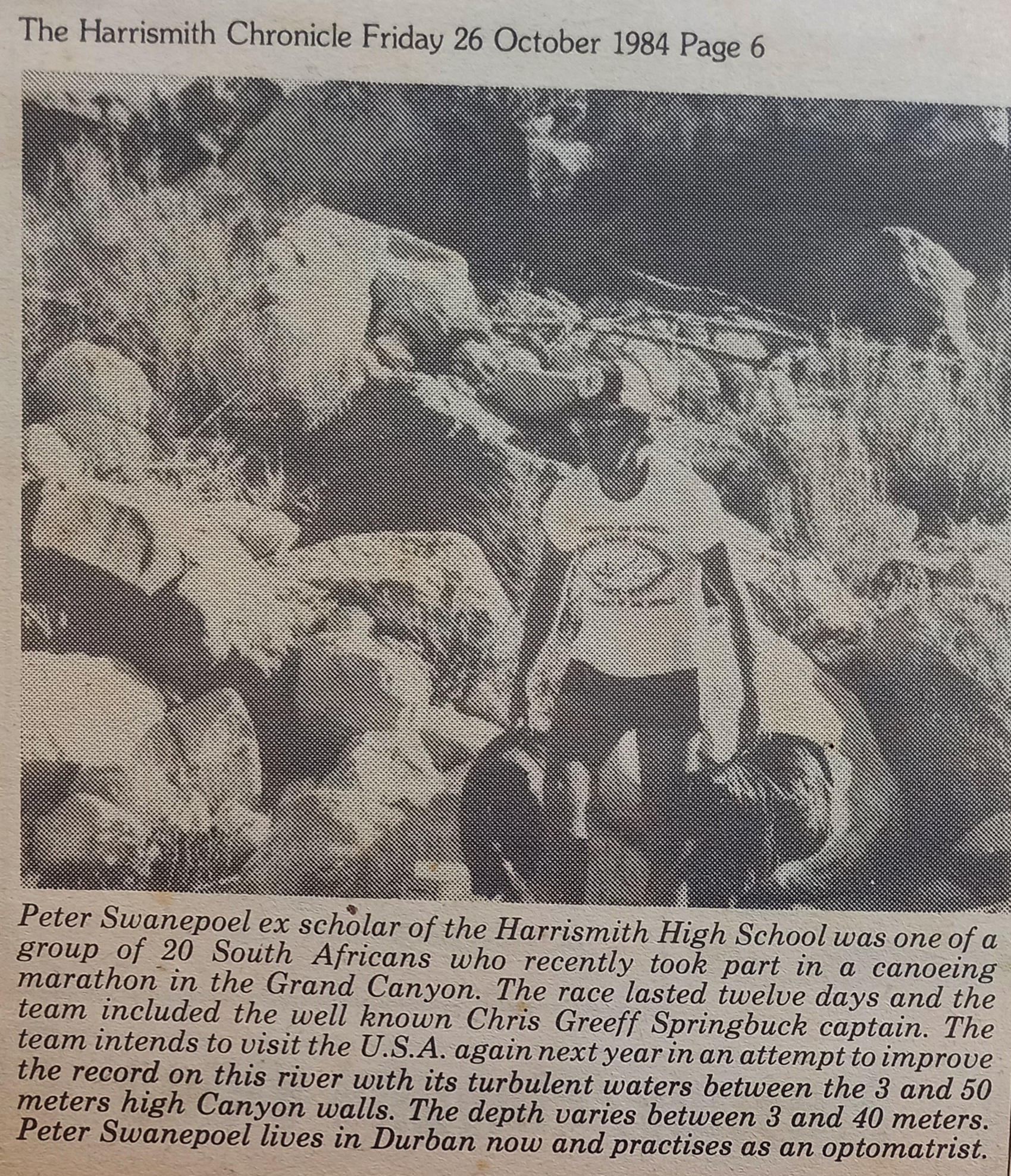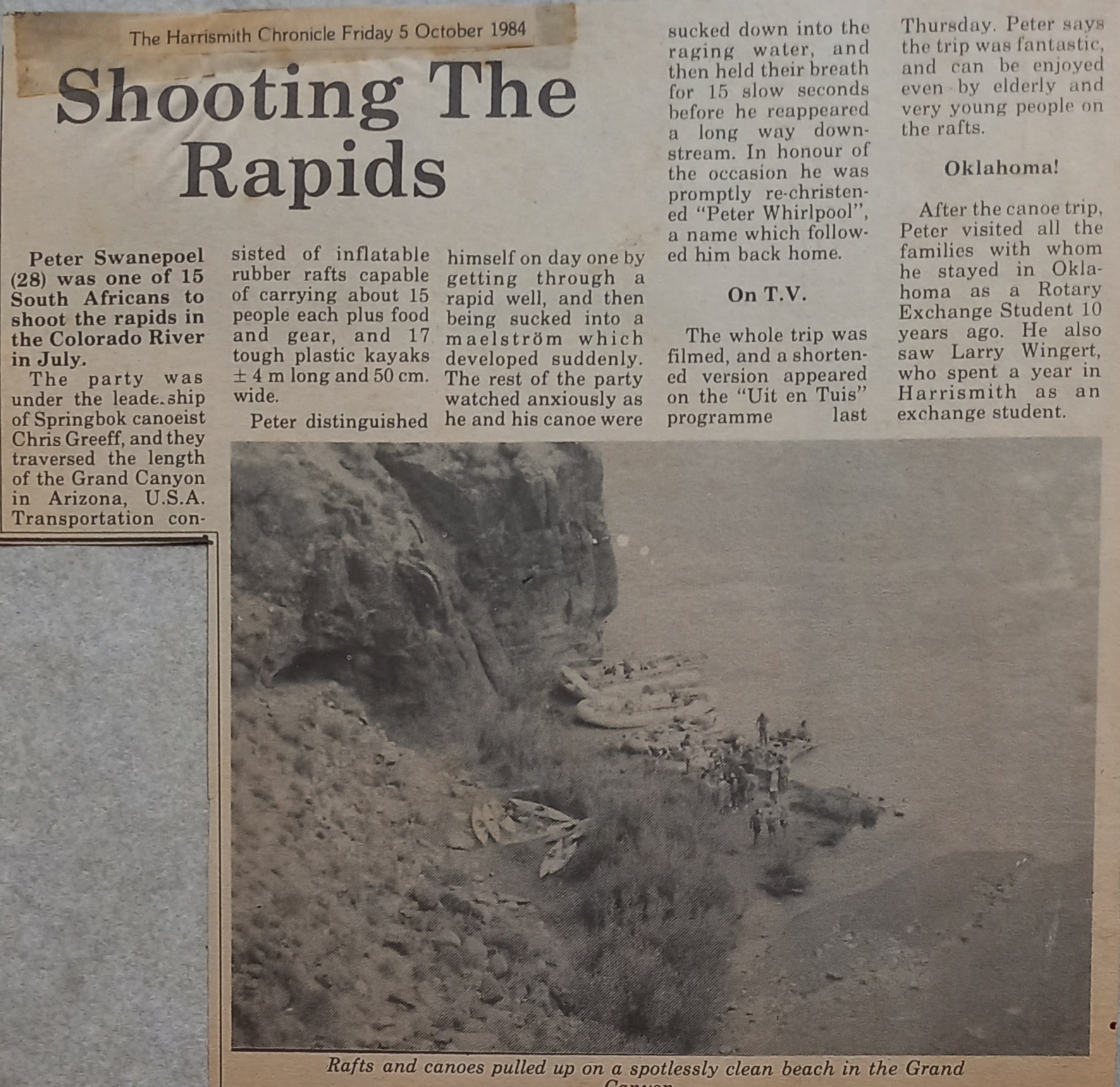 Unknown to many, 1984 was also the ONLY year Mexicans would have been able to taste Mainstay cane spirits, distilled from South African sugar cane, mixed into that Colorado river water. Well, recycled Mainstay and river water, as the Mainstay that reached the sea had first passed through the kidneys of a mad bunch of South Africans that Chris Greeff had assembled to paddle through the famous American Canyon.