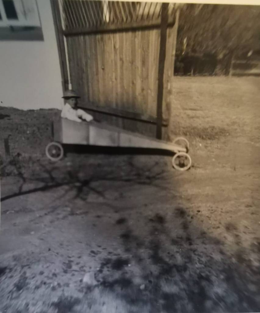 Fluff: Yep, Michael Hastings; I sent the photo to Mom to see if she can identify any others on it. My Dad crashed his kart and came a whopper, apparently had no skin left. He was the moer in when we had our races on the old road, because of the accident he was in. He still owes me a hiding with the kweper lat (quince switch). I bet he is waiting for me in Heaven! But we will just chat about it!!