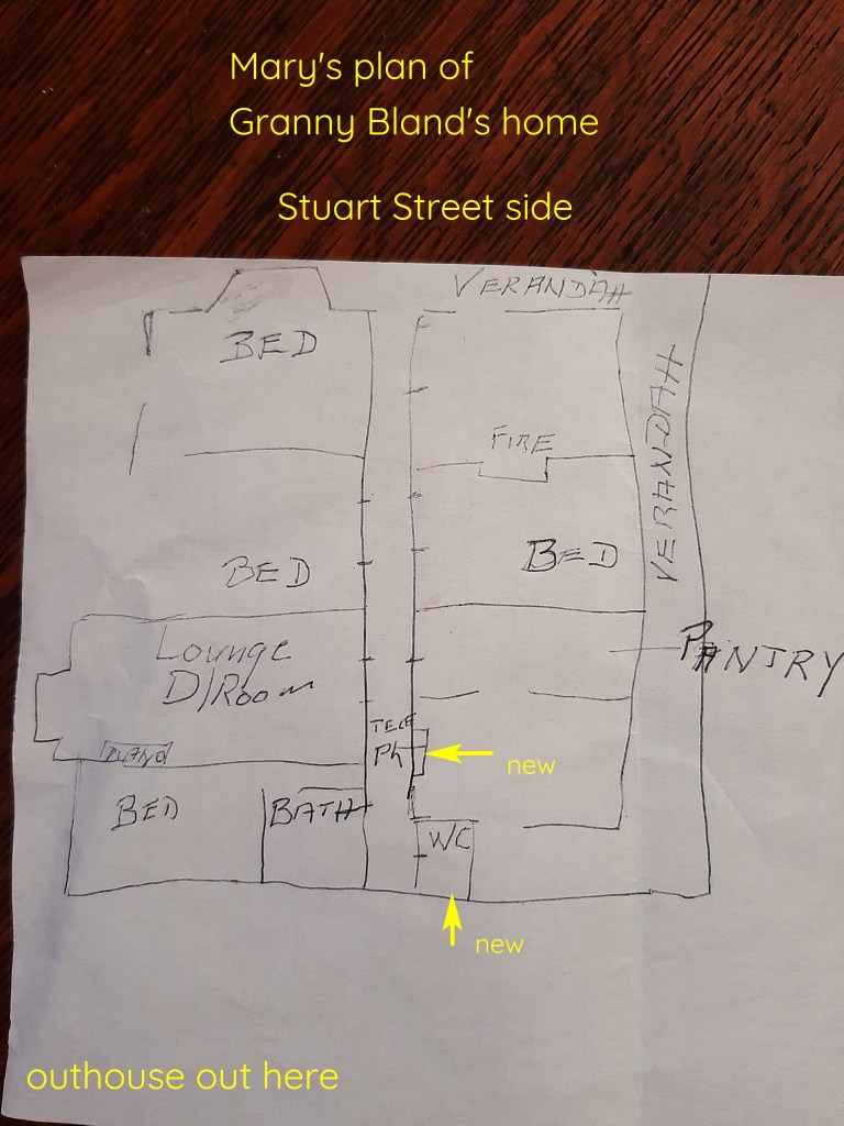 Some time after that – maybe when Granny Bland died? – Annie moved into Randolph Stiller’s Central Hotel; She then left Harrismith for the first time in her life and went to stay with sister Jessie down in George for a few years after Jessie’s daughter Leslie had died; When Jessie died, Annie returned to Harrismith and lived in John Annandale’s Grand National Hotel. John said to Mary he was battling to cope with hosting her, so Mary moved her home. Much to Pieter’s delight. NOT.