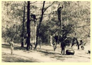 Memories of a busy first week: The tough obstacle course – carry that 44-gal drum over the wall without letting it touch the wall! Other obstacles, including tight underground tunnels. And HURRY!