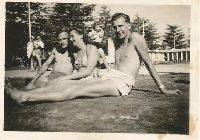 – in the right picture: Dickie ___; Pat Bland; Mary Bland; Polly du Plessis – chilling at the ‘baths’ –