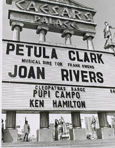 Hollywood Reporter – August 1, 1973 – Bravo Sid Gathrid of Caesar’s Palace for giving the summer crowds one of the freshest, brightest and most entertaining bookings of the year in the lady stars Petula Clark and Joan Rivers. Destroying the old hand-me-down Strip myth that two females are artistically incompatible and or have ineffectual drawing power, Pet and Joan’s opening string of standingroom-only crowds found the duo irresistible. There’s a delightful mix-up of interplay of the stars’ talents; Petula does comedy bits and Joan sings! The “raid” on the other’s forte only adds to the evening’s abundance of style, polish and charm.
