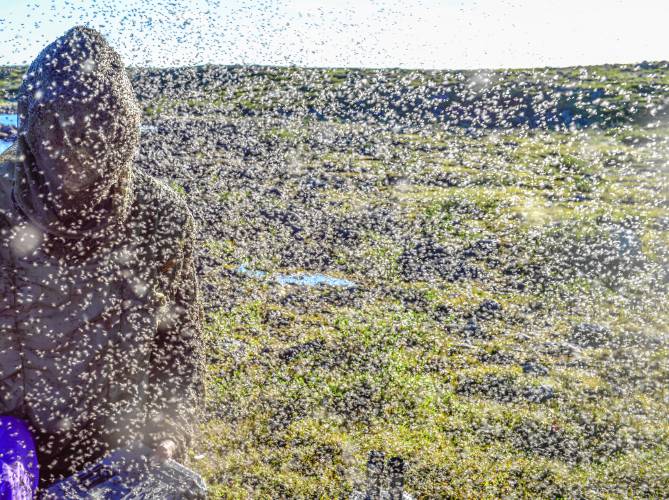 We planned a three-night trip, but after one night we turned back and ran, tails between our legs! We had spent the day trying to dodge dark clouds of midges and no-see-ems, or black flies. When you ran your hand through your hair it came out covered in blood. That night we pitched the tents on an island in a cloud of mozzies. We lined up with our kit, zipped open, dived in and zipped up immediately. So fast that we only had fourteen million mosquitoes in the tent, a fraction of the hordes that were hovering and zeeeee-ing outside!